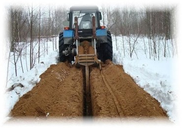 На траншеекопателе установлена зимняя цепь. За смену способна проходить от 300 до 1000 метров в зависимости от грунта и глубины пропила. Спереди ковш погрузчика 1 м3, Доставка по городу +1 час работы. Минимальное время работы 4 часа.